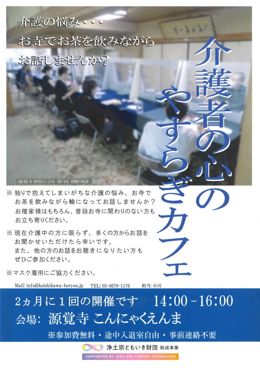 (こちらでも「介護者の心のやすらぎカフェ」を開催しております)